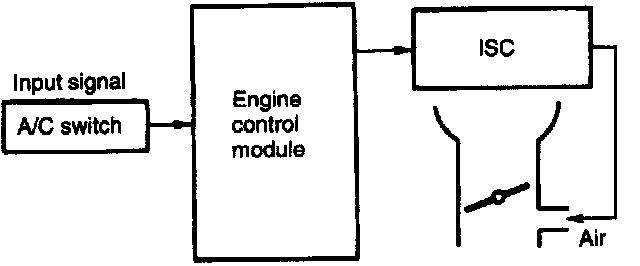 - The Engine Control module activates the idle speed control solenoid valve in advance to control the amount of by-pass air flowing through the throttle body in relation to the signal emitted from the A/C switch, so that the proper idle speed specified for each engine load is achieved.