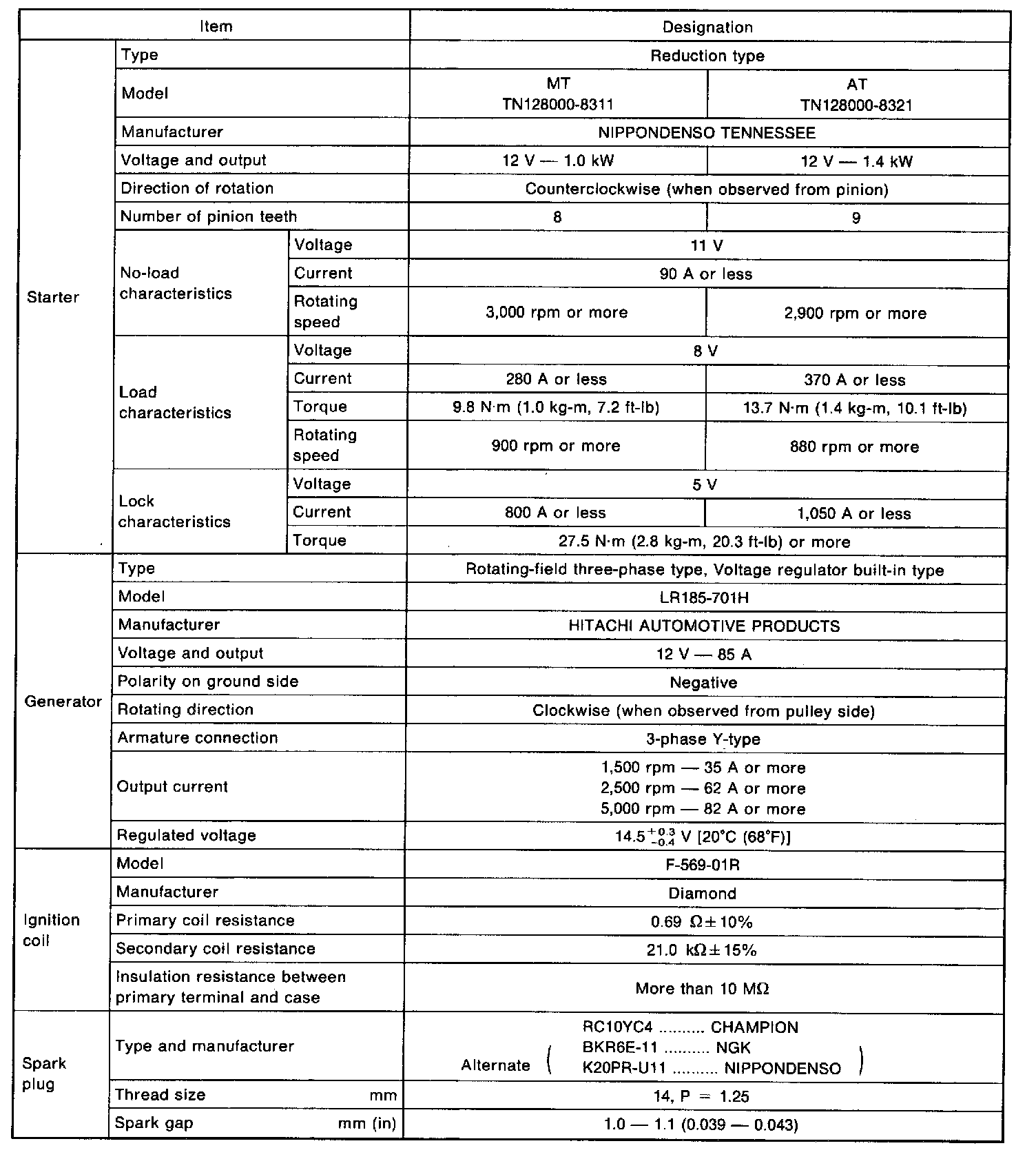 Engine Electrical - Specifications: