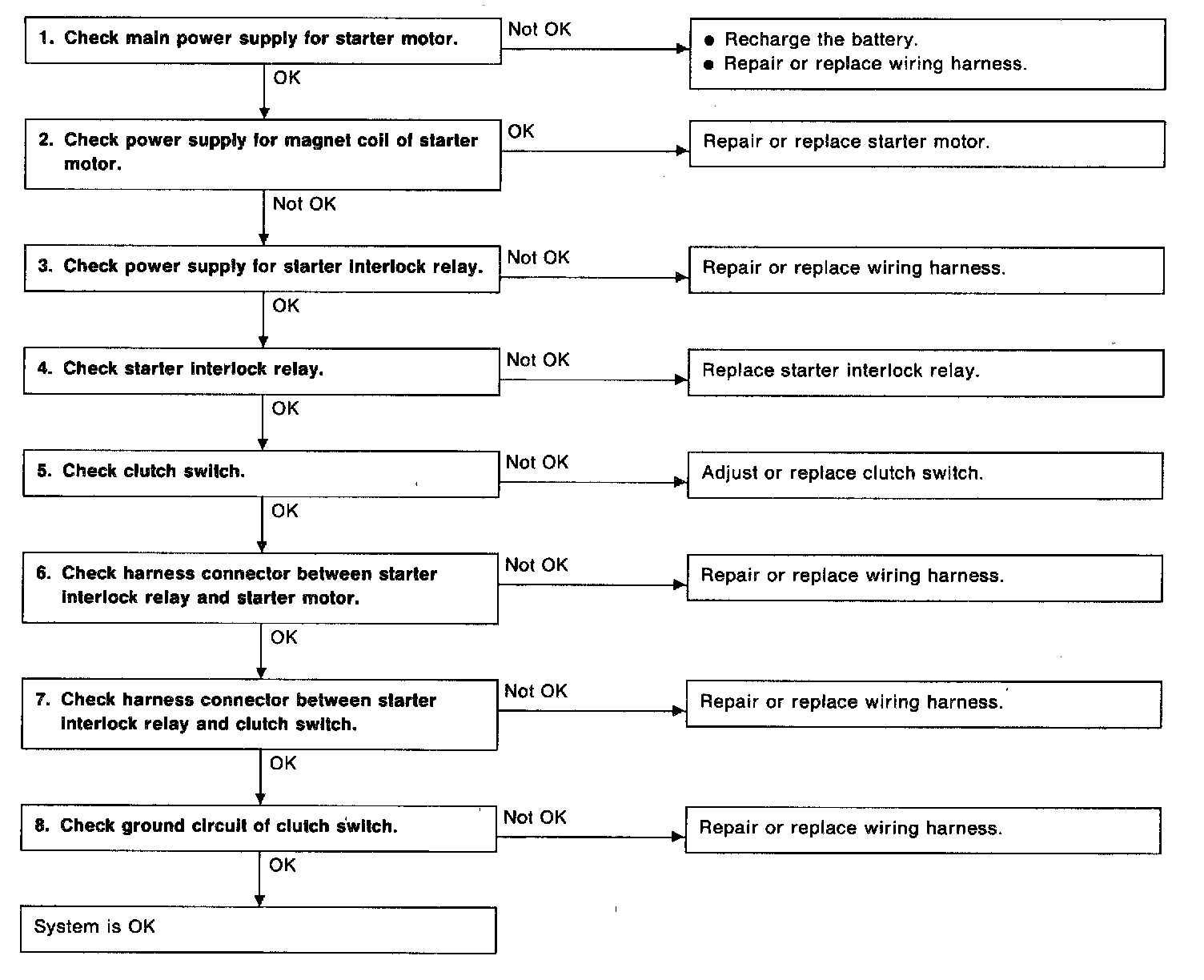 1. CHECK MAIN POWER SUPPLY FOR STARTER MOTOR.