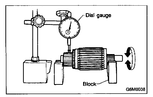 Using circuit tester, touch one probe to the commutator segment and the other to shaft. There should be no continuity. If there is a continuity, armature is grounded.