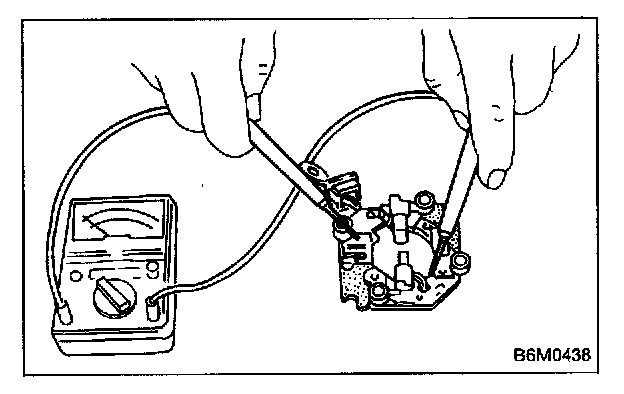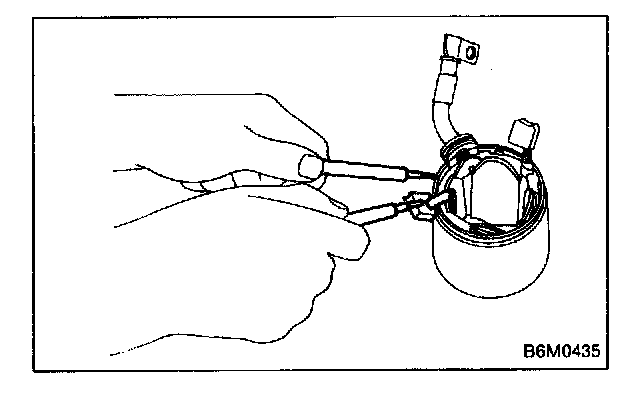 Measure brush spring force with a spring scale. If it is less than the service limit, replace brush spring.