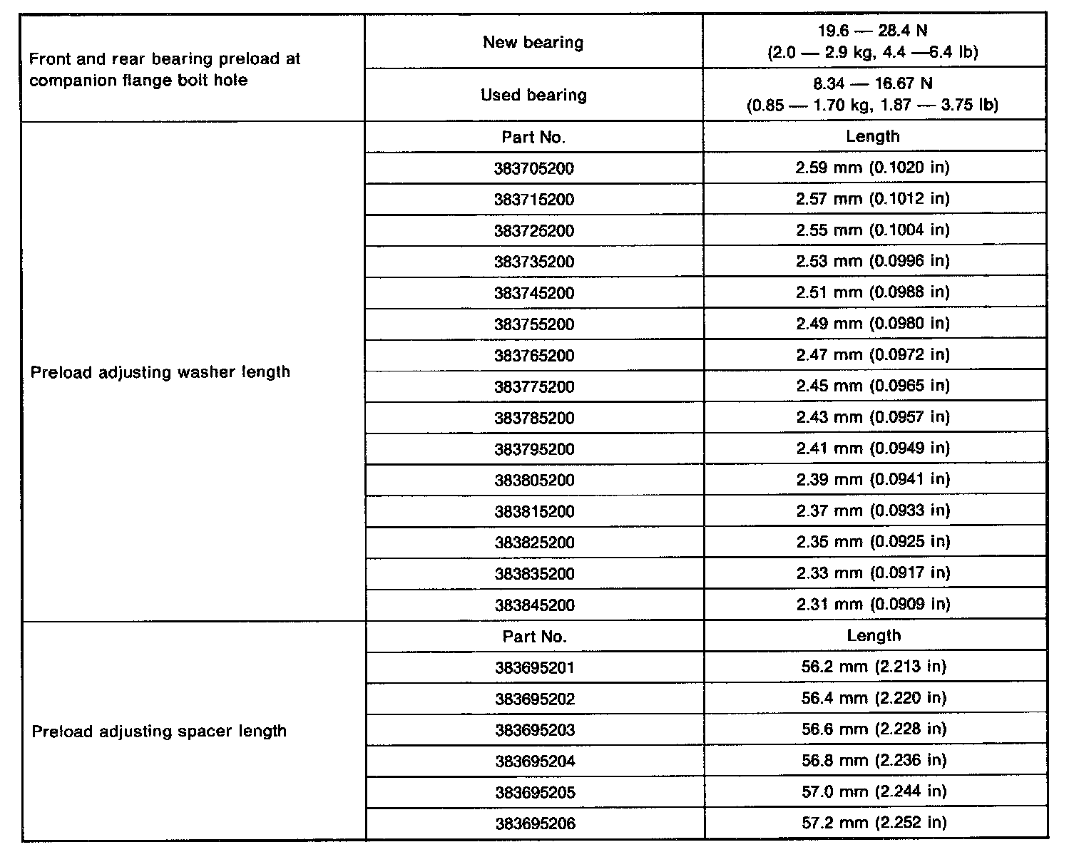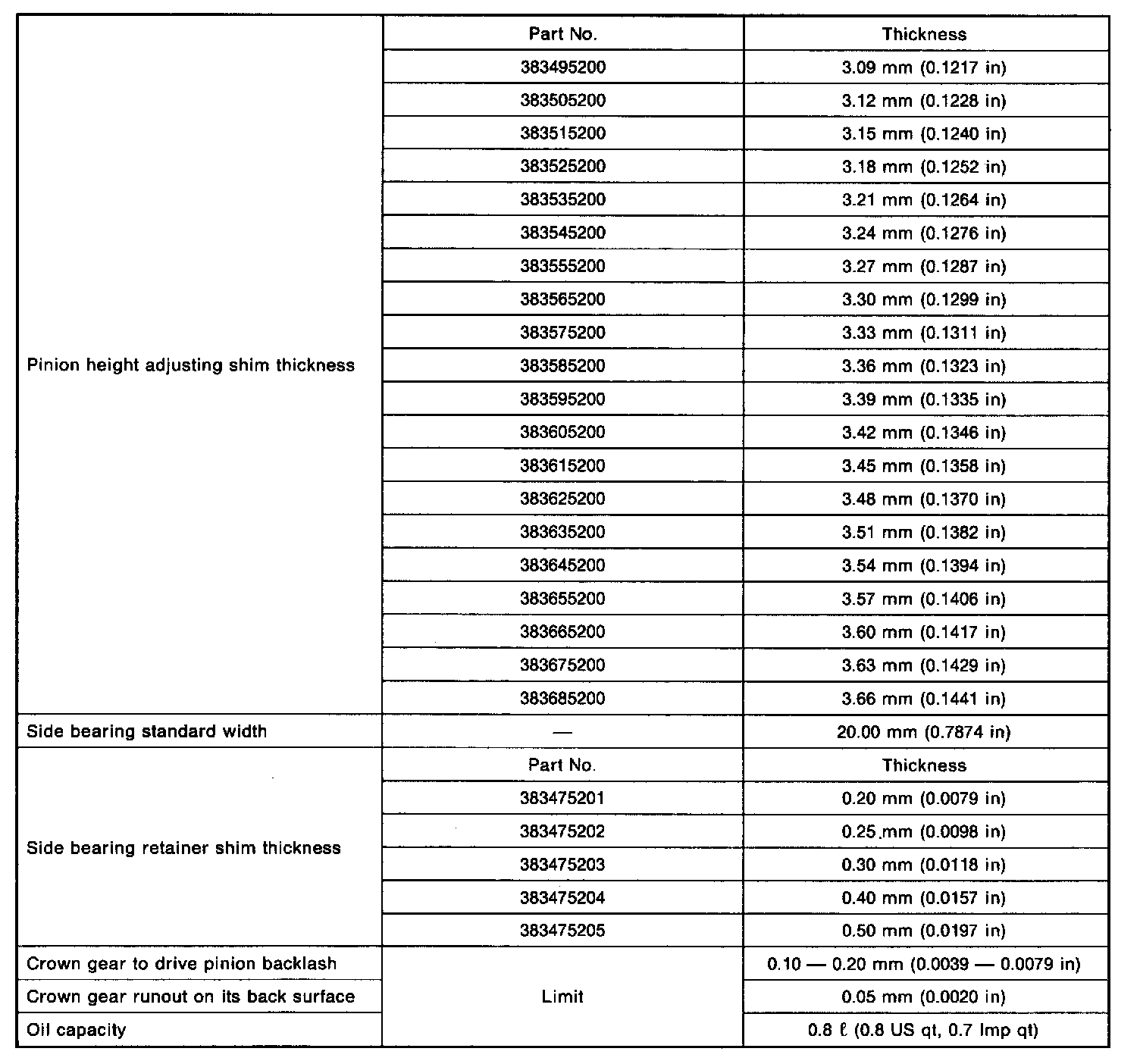Rear Differential Service Data
