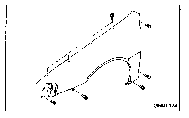 CAUTION: Be careful not to scratch body panels with fender edges when removing it.