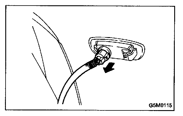 5. Remove bolts which secure fender to radiator panel and turn signal light connector.