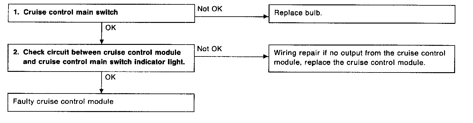 - Bulb failure or open harness of the indicator circuit in the cruise control main switch.