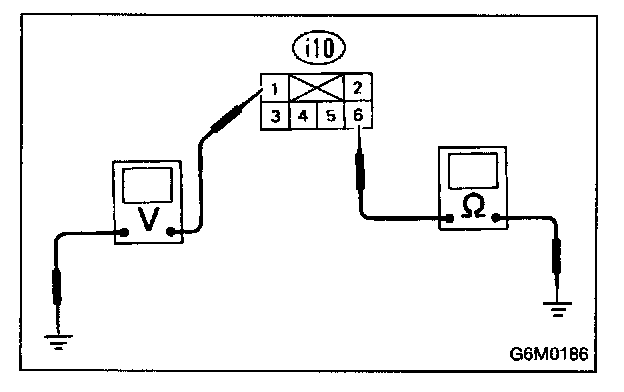 1. Measure voltage between cruise control main switch and body. (Perform this measurement by turning ON the ignition switch and the cruise control main switch.)