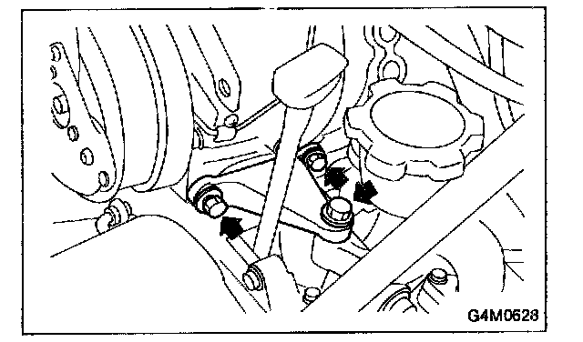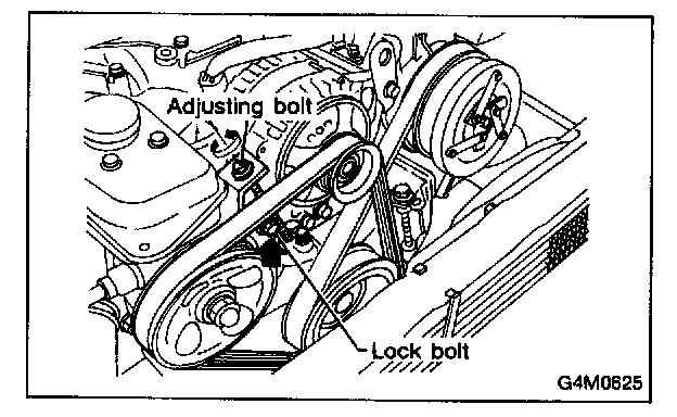 After adjusting V-belt tension, tighten generator bracket lock bolt securely.
