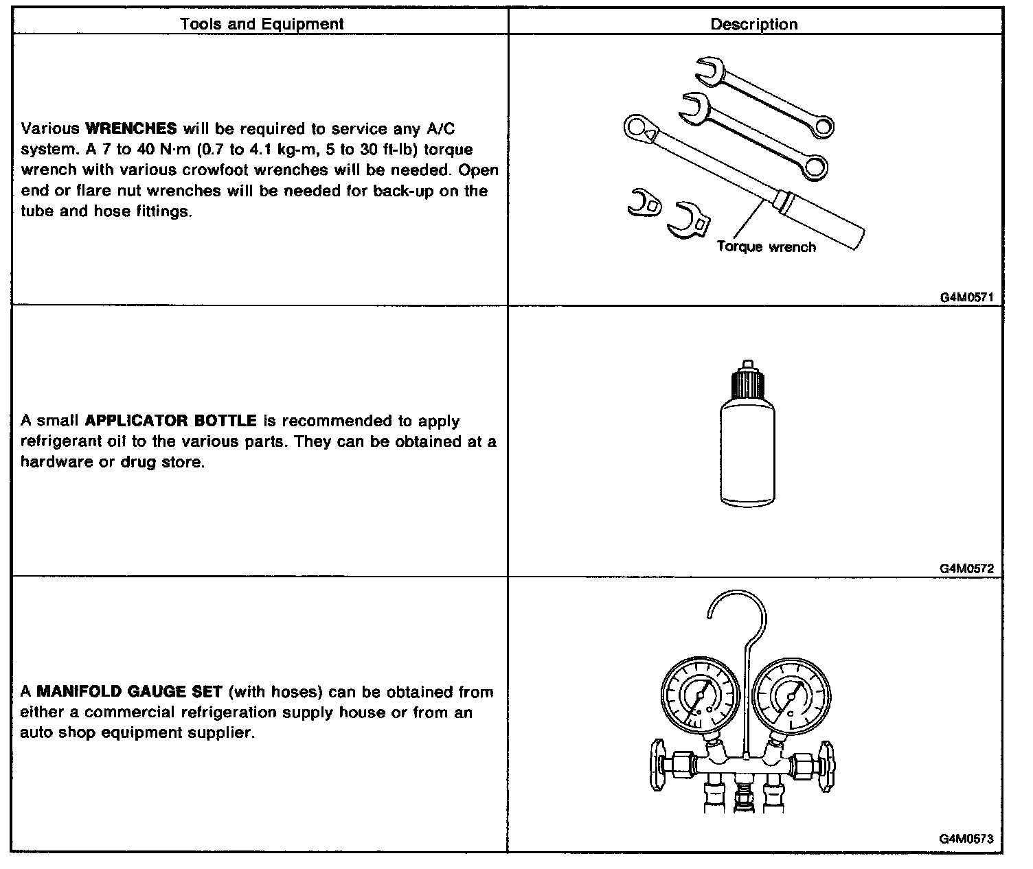 This section provides information about the tools and equipment that will be necessary to properly service the A/C system.