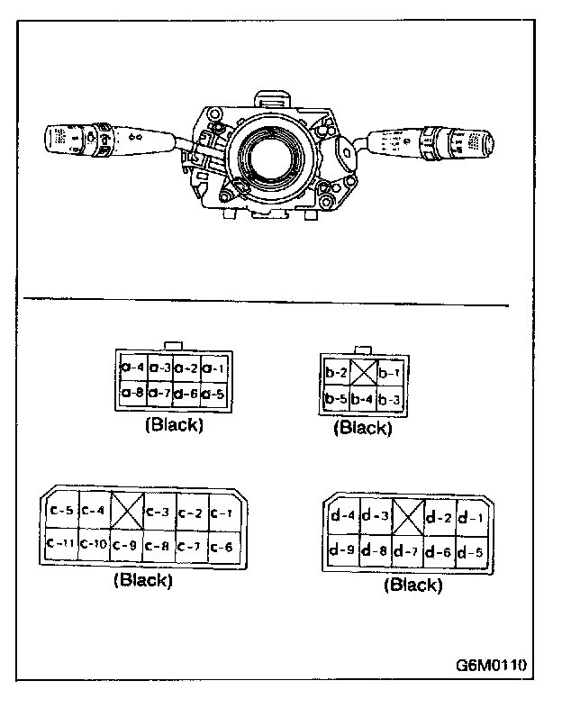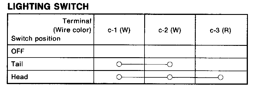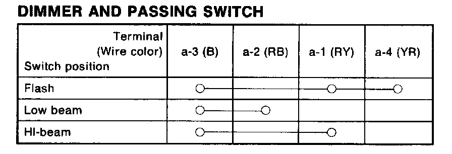 Move combination switch to respective positions and check continuity between terminals as indicated in the tables.