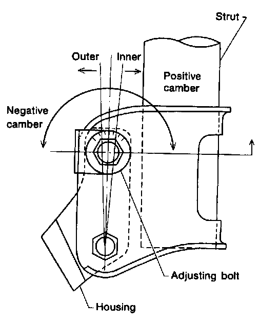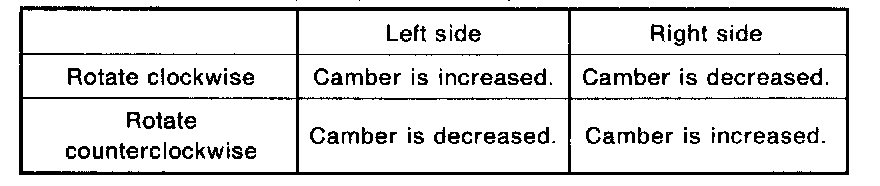 2) Turn camber adjusting bolt so that camber is set at the middle value of specifications.