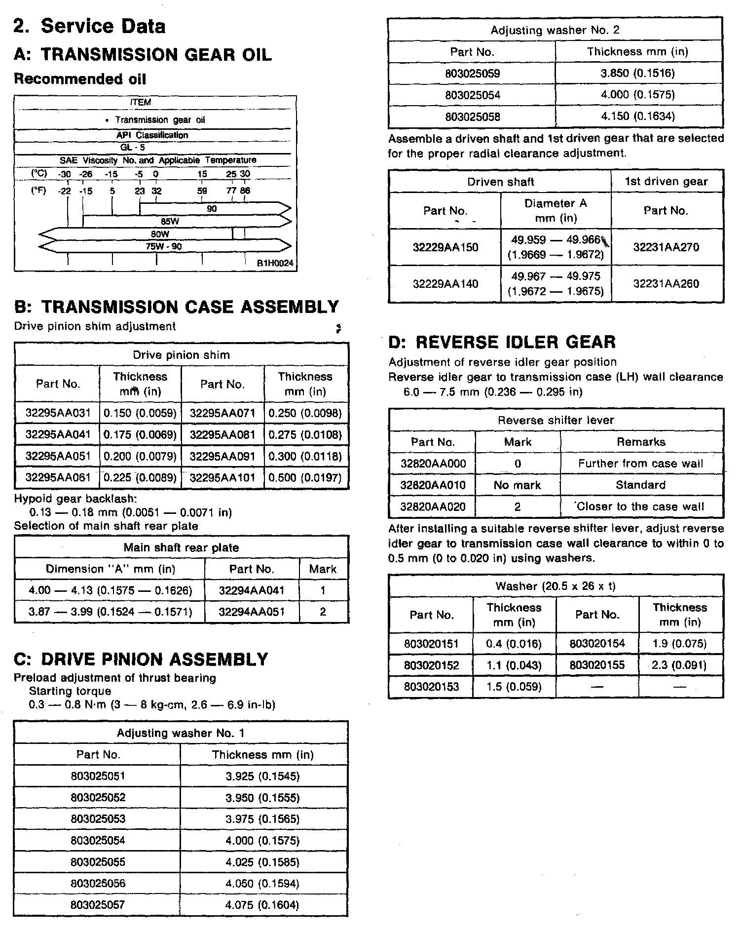 5-spd M/T/4-spd A/T, Transmission/Differential Gear Ratios (Sport Wgn):