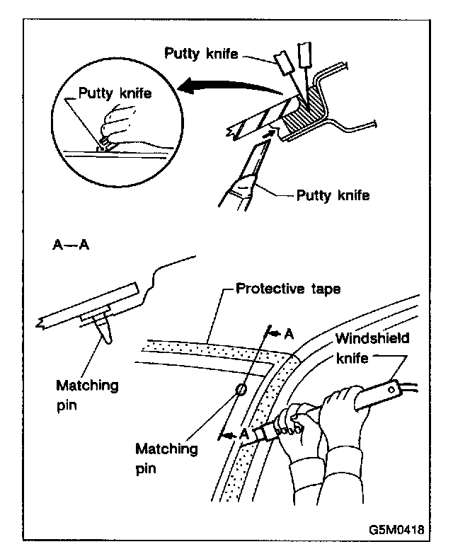 1. After cutting layer of adhesive, remove gum rubber remaining on body.