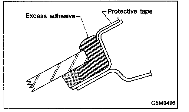 CAUTION: When making through-hole into adhesive layer and cutting the adhesive, be careful not to damage interior and exterior parts.
