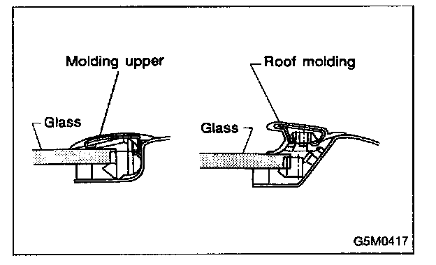 CAUTION: Do not open and close door after moldings have been installed. When opening and closing door for unavoidable reason, lower door glass and gently move door.