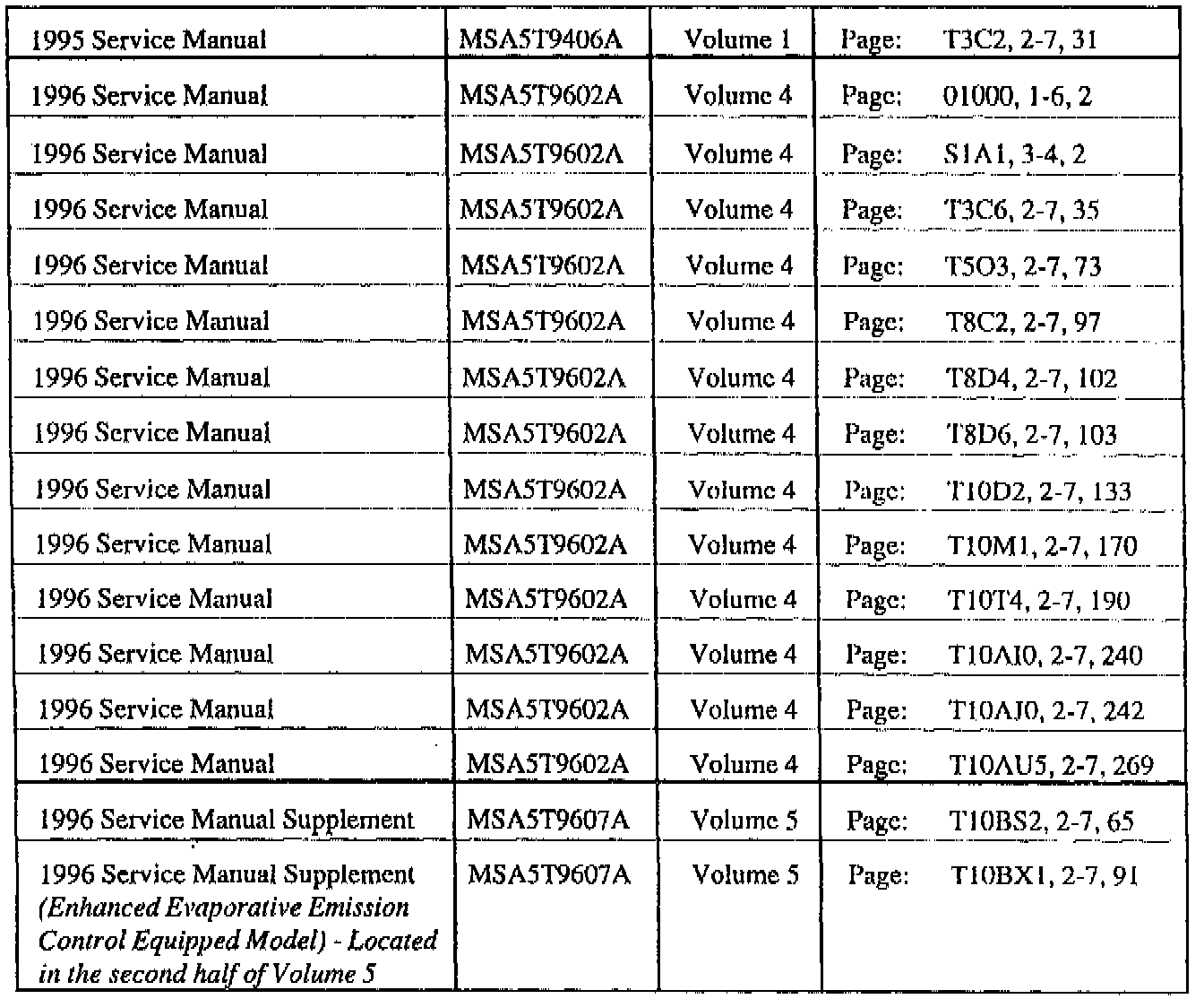 1995 AND 1996 LEGACY SERVICE MANUALS