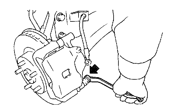 3) Raise caliper body and move it toward vehicle center to separate it from support.