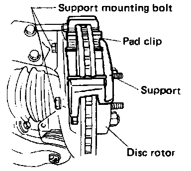 NOTE: Remove support only when replacing it or the rotor. It need not be removed when servicing caliper body assembly.