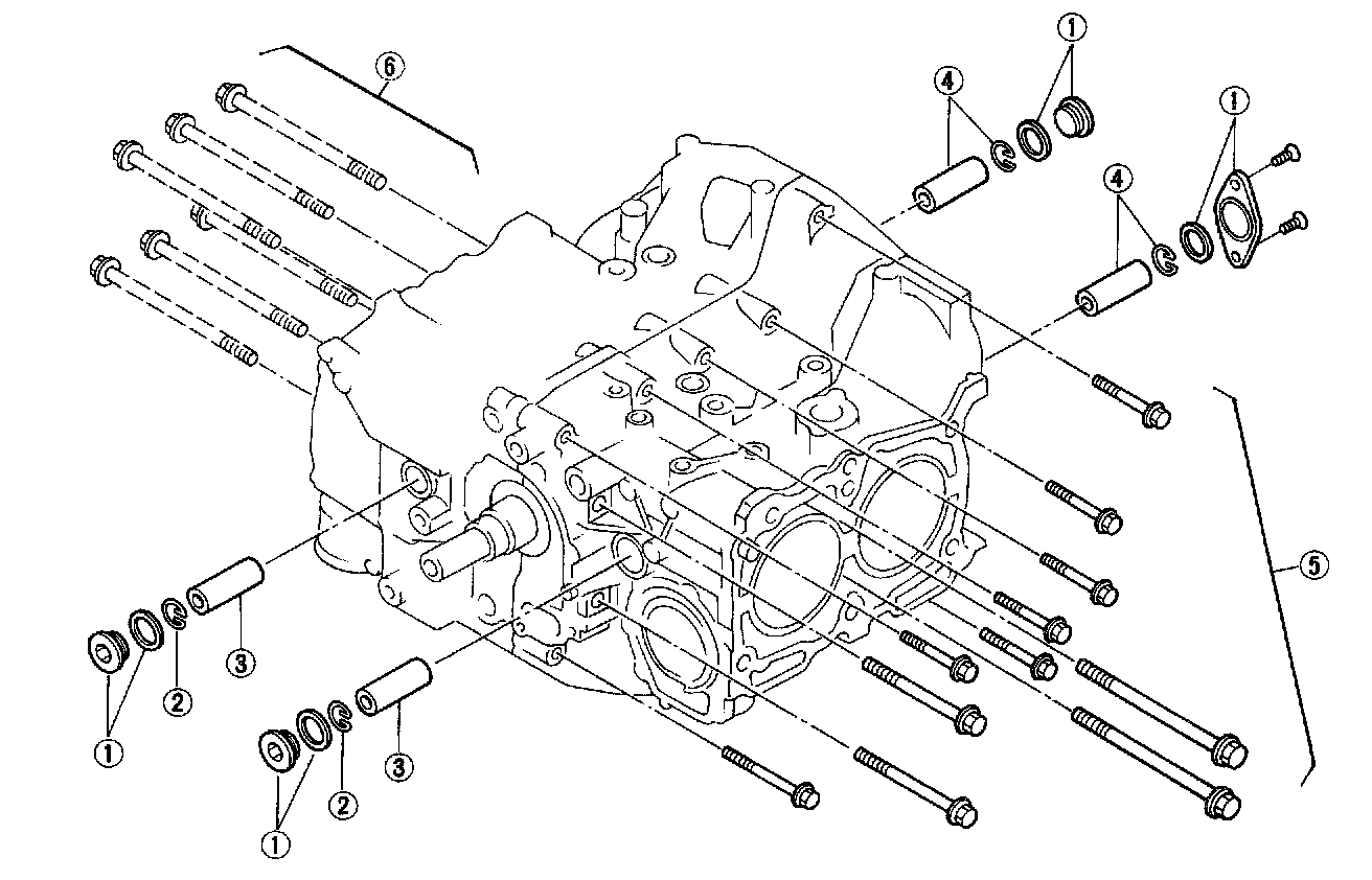 5) Remove bolts which connect cylinder block on the side of #2 and #4 cylinders.