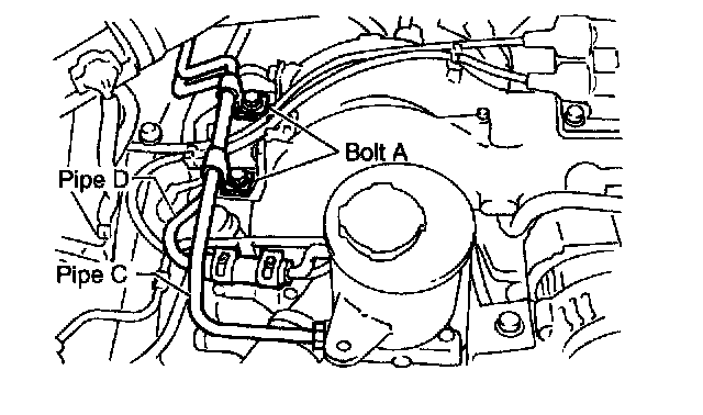 CAUTION: Visually check that hose between tank and pipe D is free from bending or twisting.