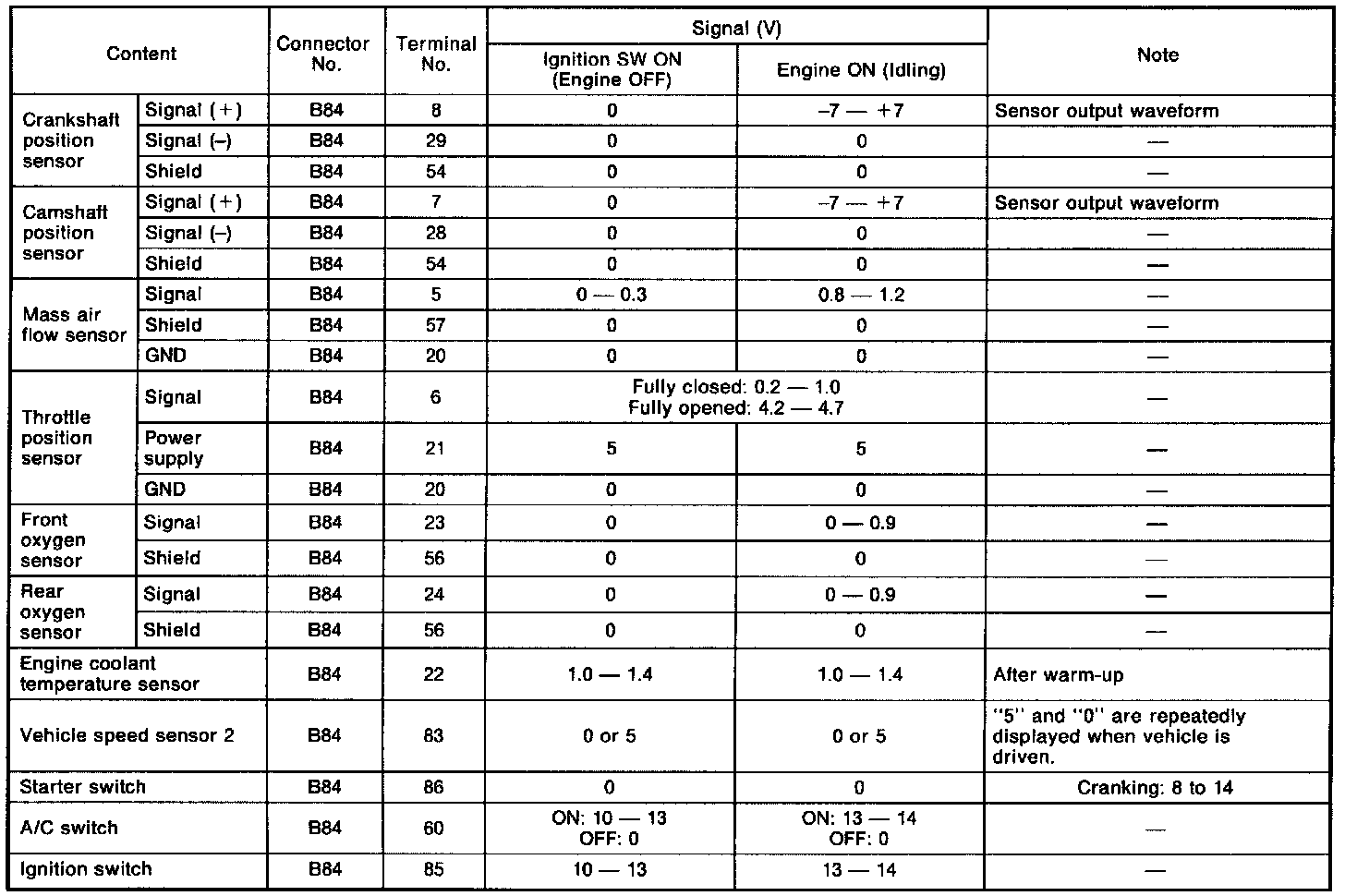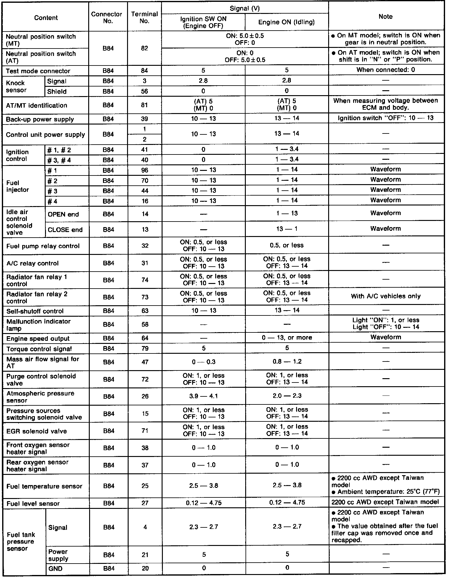 ENGINE CONTROL MODULE (ECM) I/0 SIGNAL