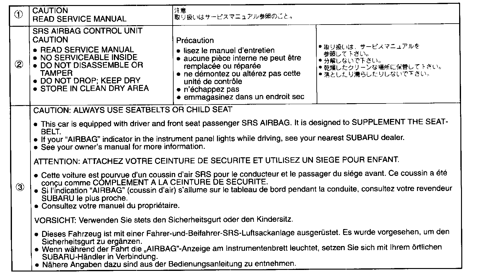 Warning And Caution Labels - Index 1: