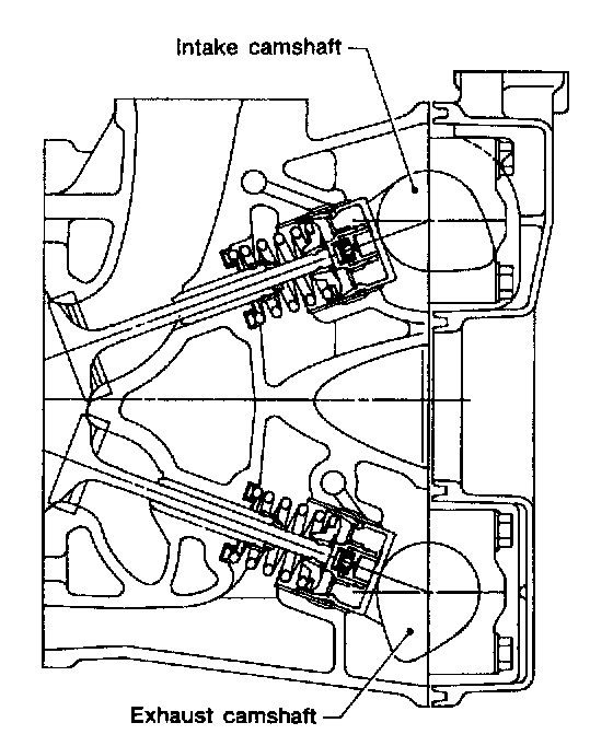 - Intake and exhaust camshafts for this DOHC engine can be independently rotated with timing belts removed. As can be seen from the figure, if intake and exhaust valves are lifted simultaneously, their heads will interfere with each other, resulting in bent valves.