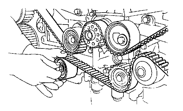 CAUTION: Make sure that the marks on timing belt and sprockets are aligned.
