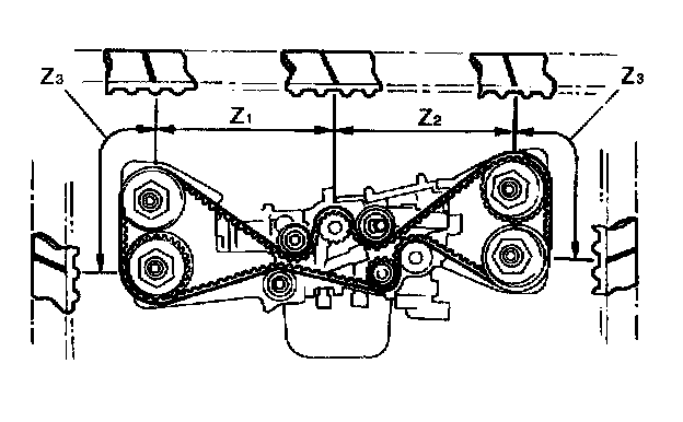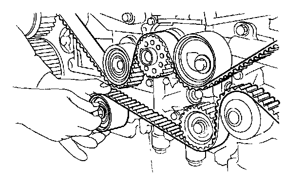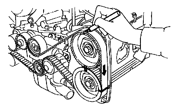 (2) Using white paint put alignment and/or arrow marks on timing belts in relation to the sprockets.