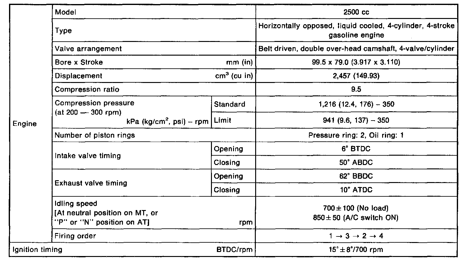 Outback [Legacy] AWD F4-2.5L DOHC