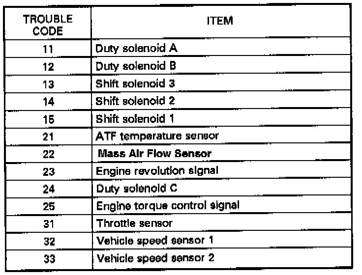 The self-diagnosis system is capable of detecting any trouble which has occurred in any of the following input and output signal systems.