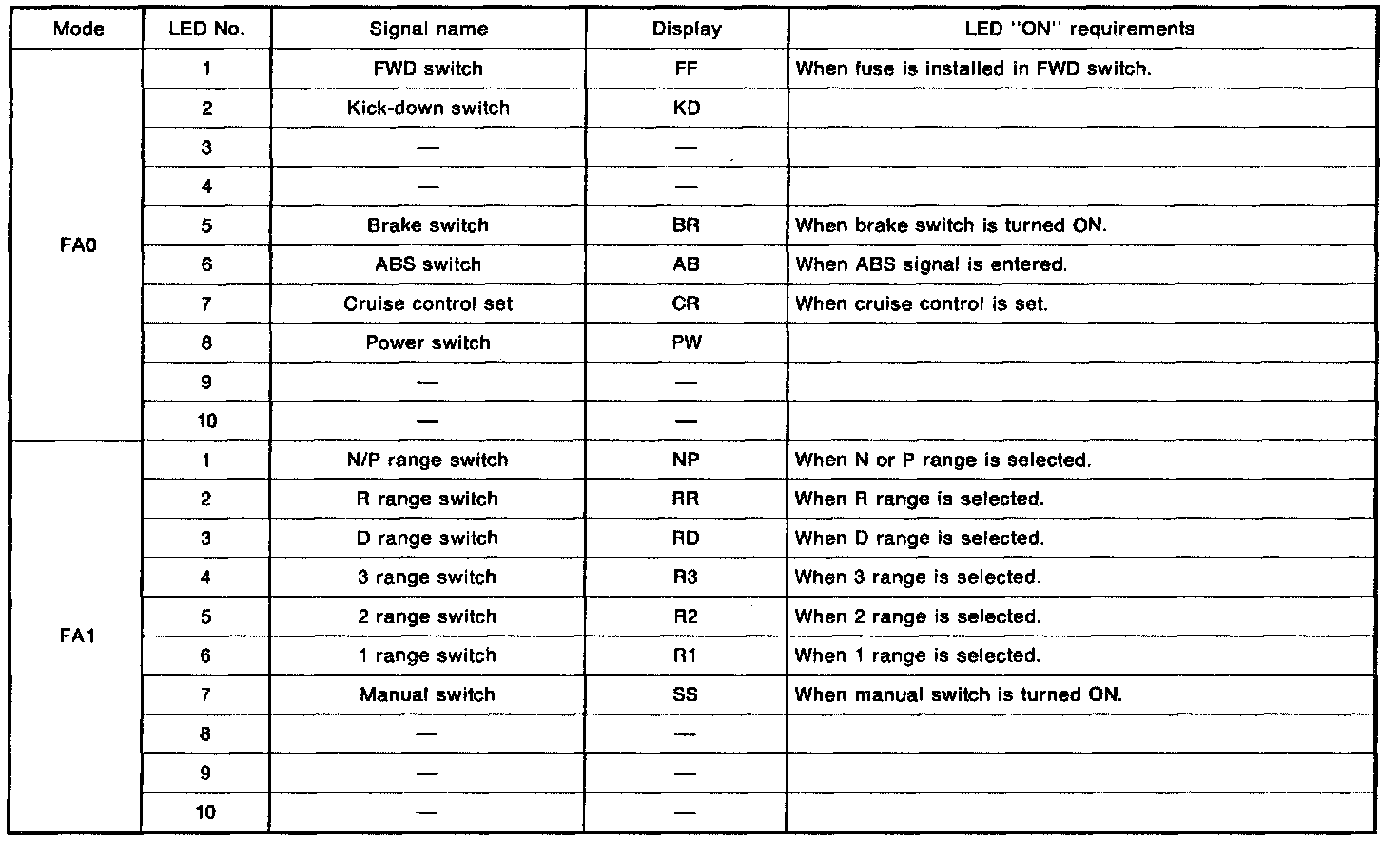 Subaru Select Monitor Code Descriptions