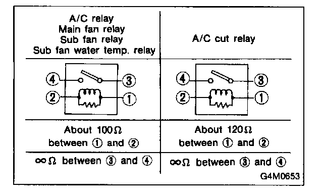Check conduction with a circuit tester (ohm range) according to the table in figure.