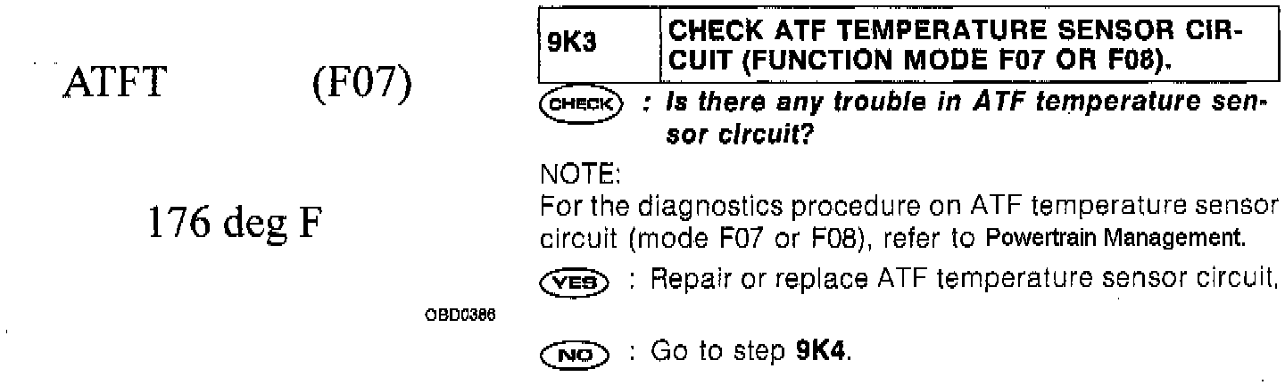 9K3 - Check ATF Temp. Sensor Circuit (Function Mode F07/8)