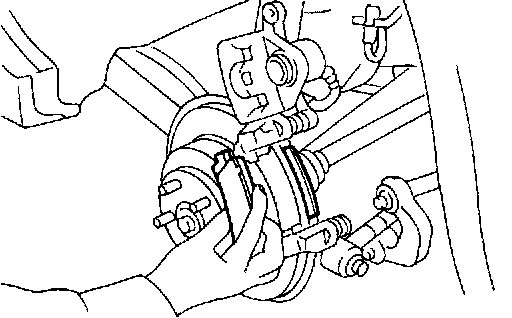 4) Raise caliper body and move it toward vehicle center to separate it from support.