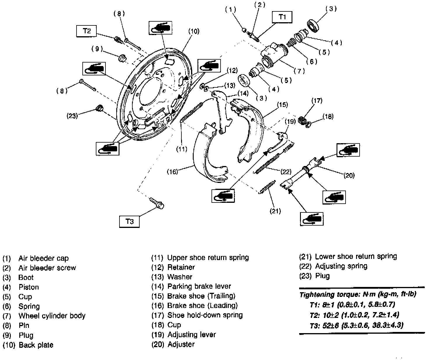 1) Clean back plate and wheel cylinder.