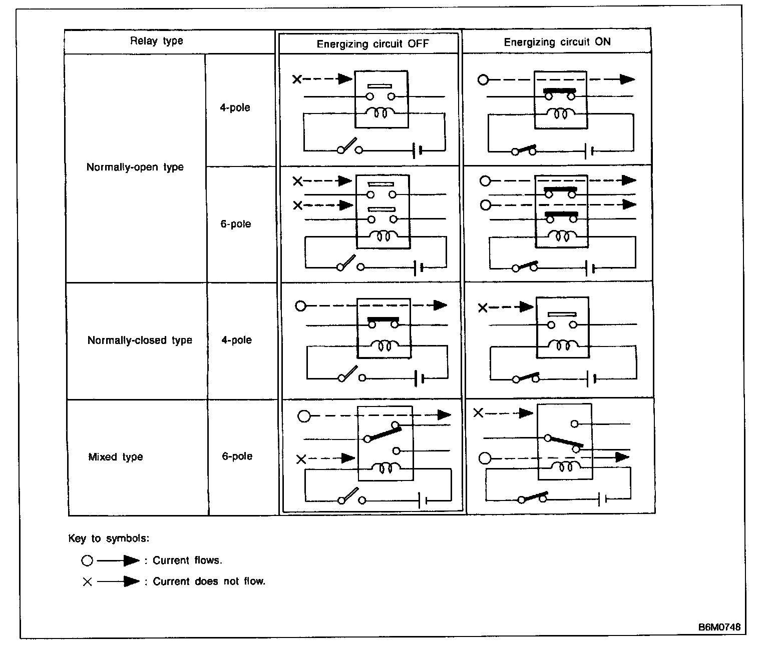 The wiring diagram shows the relay mode when the energizing circuit is OFF.