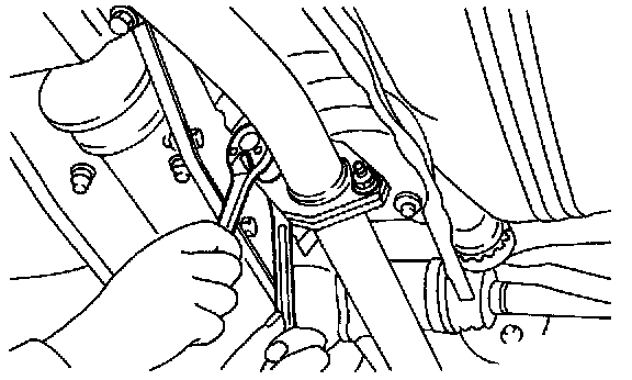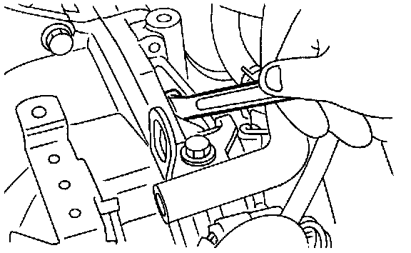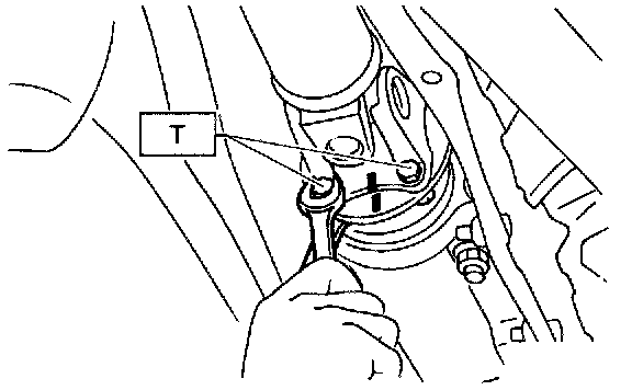 6) Tighten bolt which holds right upper side of transmission to engine.