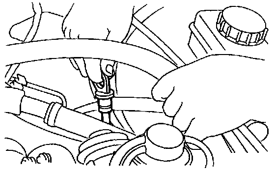 15) Install ATF level gauge guide, and ATF cooler hoses onto pipe. (AT vehicles)