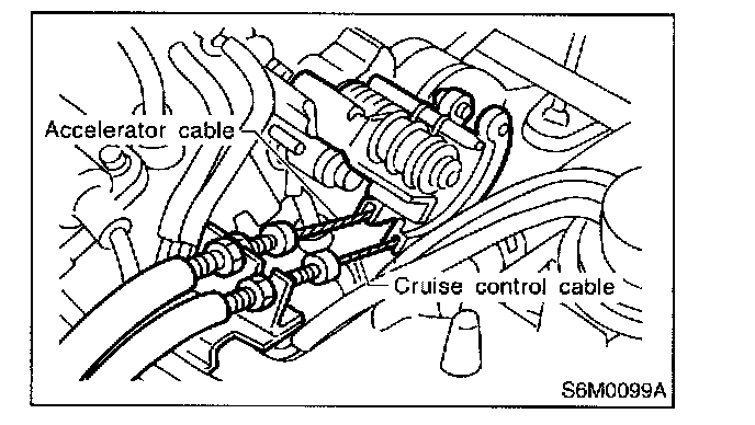CHECK: Is the cruise Control cable securely installed to the left of the accelerator cable?
