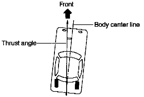 NOTE: Thrust angle refers to a mean value of left and right rear wheel toe angles in relation to vehicle body center line. Vehicle is driven straight in the thrust angle direction while swinging in the oblique direction depending on the degree of the mean thrust angle.