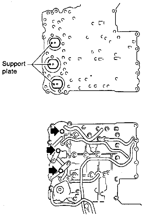 1. Remove the shift solenoid assembly and duty solenoid A from the upper valve body.