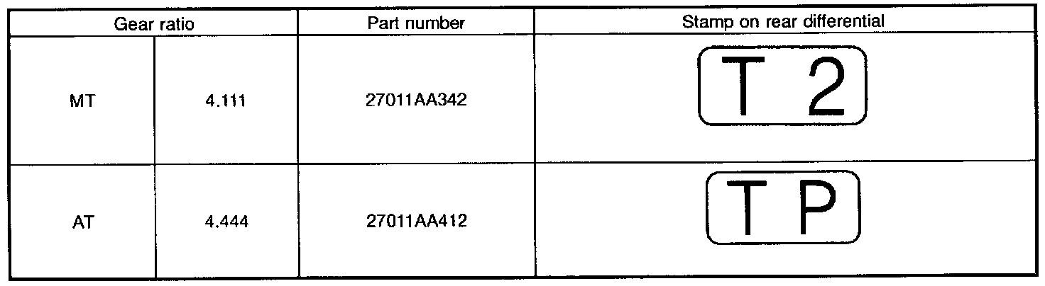 When replacing a rear differential assembly, select the correct one according to the following table.