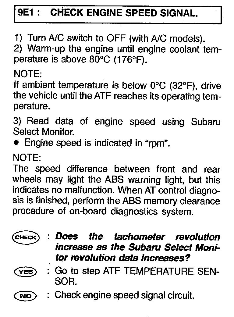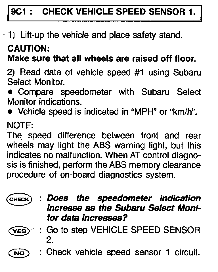 C: CHECK VEHICLE SPEED SENSOR 1.