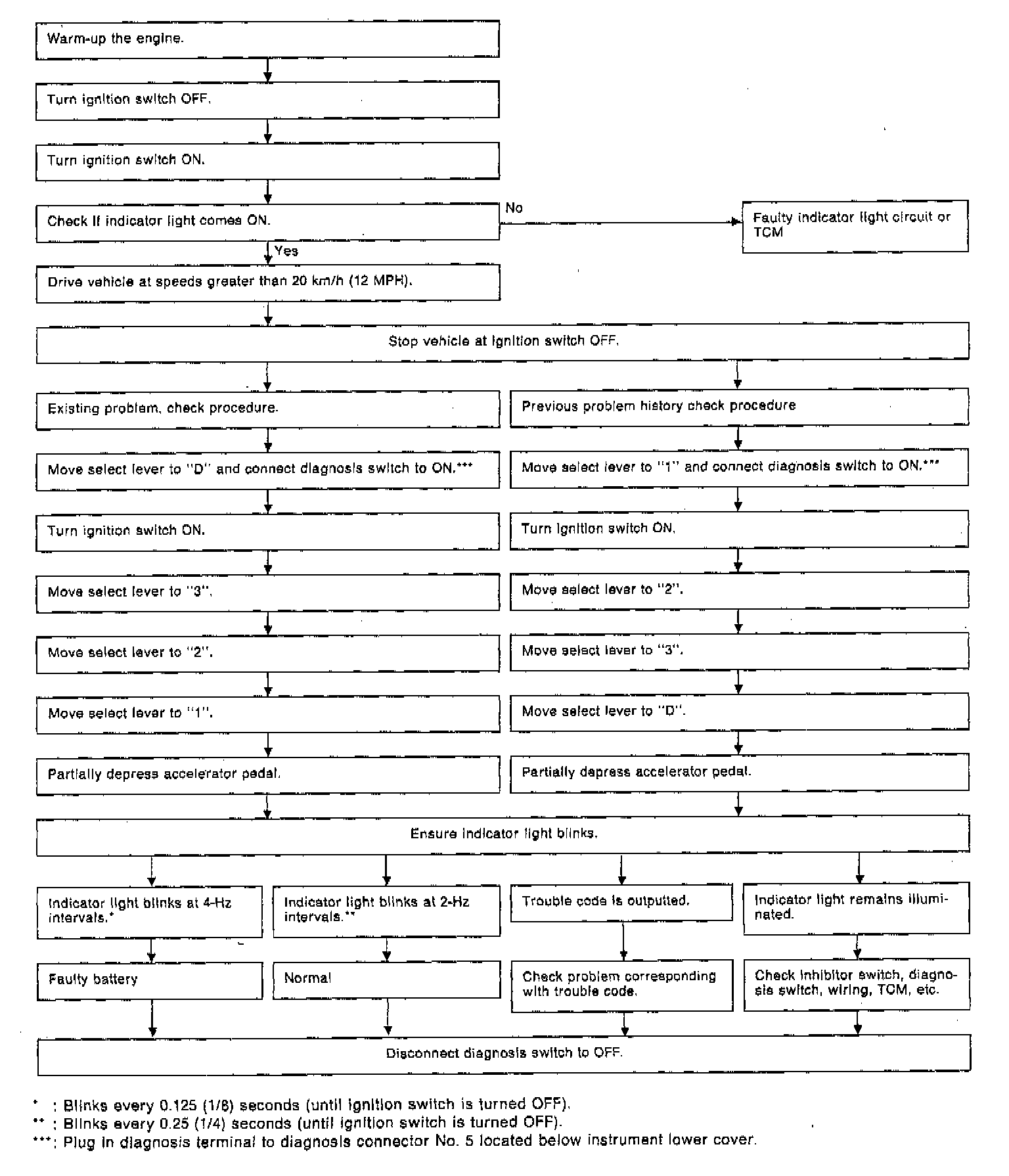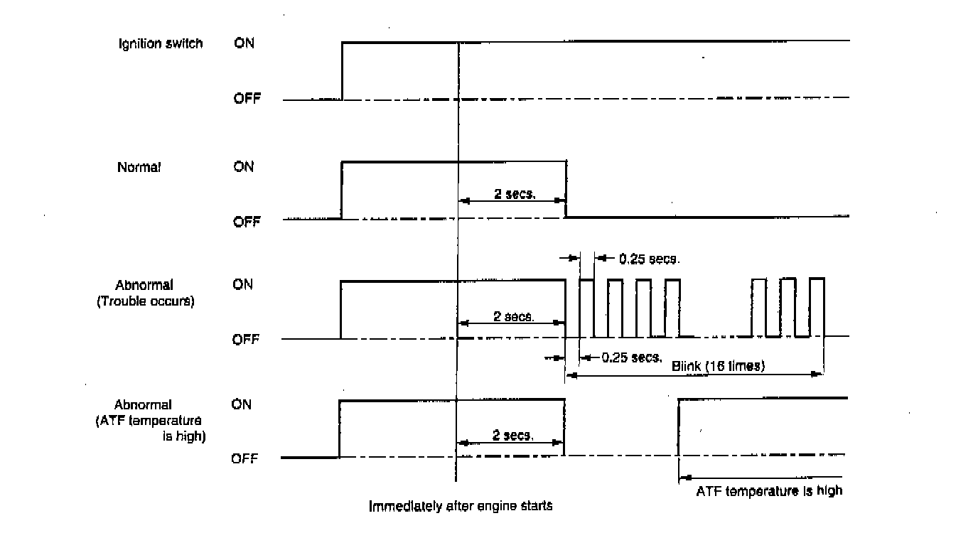 When any on-board diagnostics item is malfunctioning, the display on the AT OIL TEMP indicator blinks immediately after the engine starts.