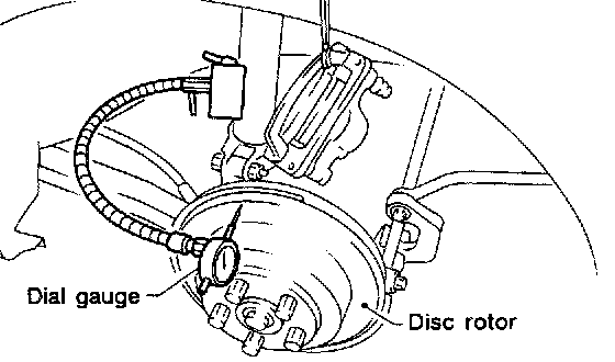 2. Set a dial gauge on the disc rotor. Turn disc rotor to check runout.