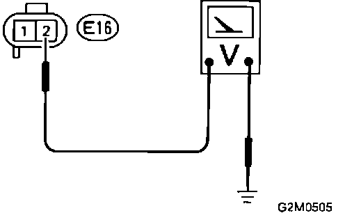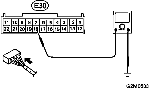 With ignition "ON," measure voltage between ECM connector terminal (E30) 18 and ground. It should read 10 - 13 Volts.