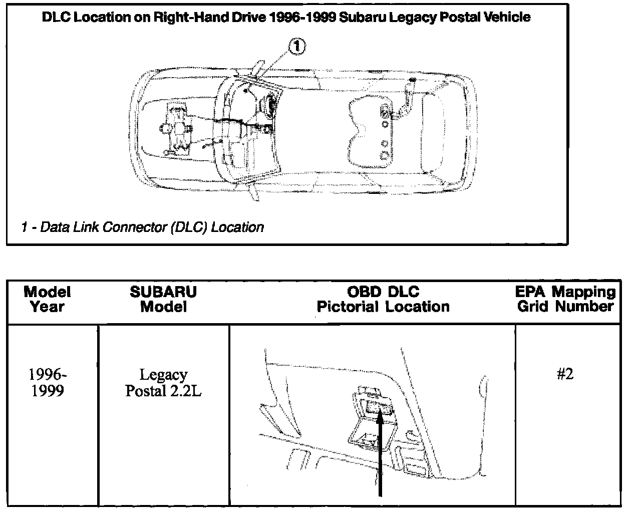 This bulletin provides additional information to SUBARU Bulletin 11-54-99, which covers the diagnostic link connector locations as shown for all 1996 through 1999 model SUBARU vehicles.