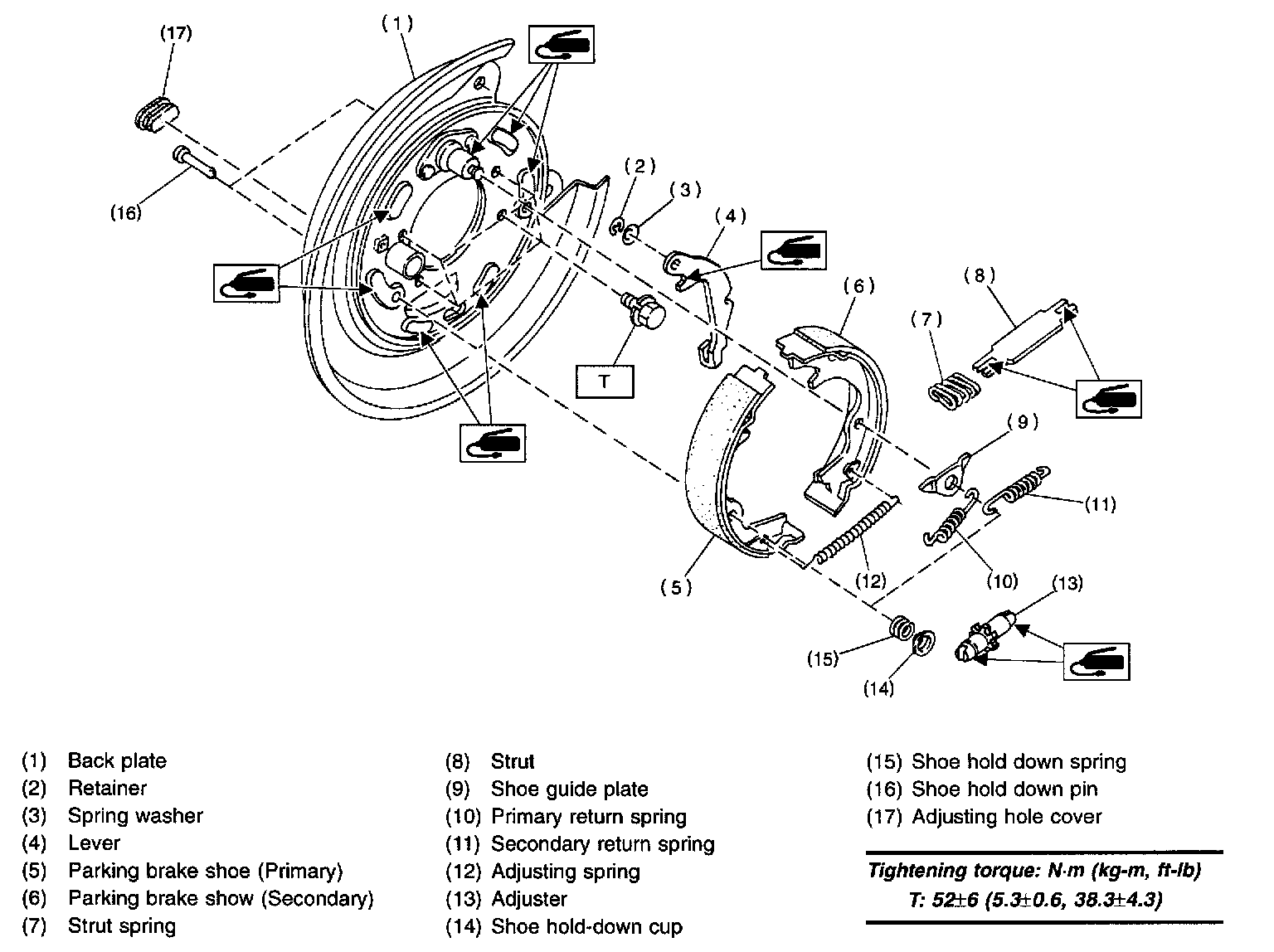 1. Apply brake grease to the following places.