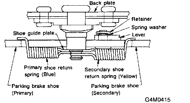 CAUTION: After replacing parking brake lining, be sure to drive vehicle for "break-in" purposes.