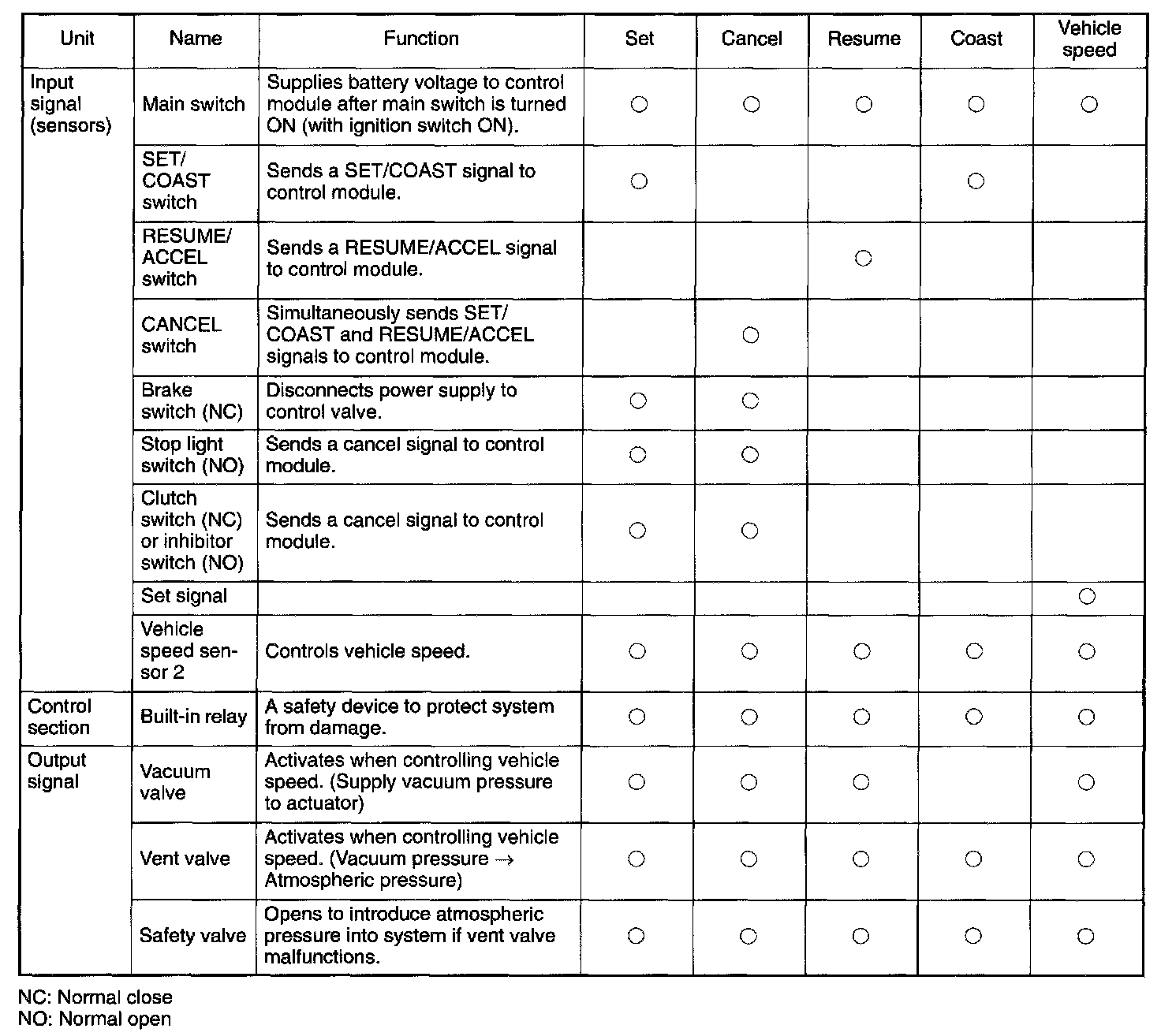 - The cruise control module compares the actual vehicle speed detected by feedback signals from the speed sensor 2 (MI) or 1CM (AT) with the speed set in the memory memorized when the set switch was turned on.